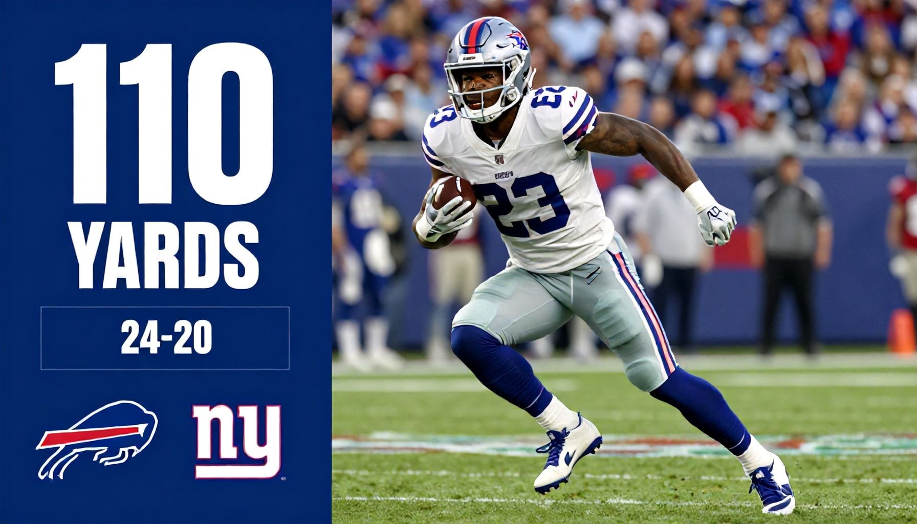 Saquon Barkley delivered a dominant performance, rushing for 110 yards and propelling the New York Giants to a hard-fought 24-20 victory over the Buffalo Bills. The Giants’ star running back showcased his explosive speed and agility, breaking tackles and gaining crucial yards on key drives.